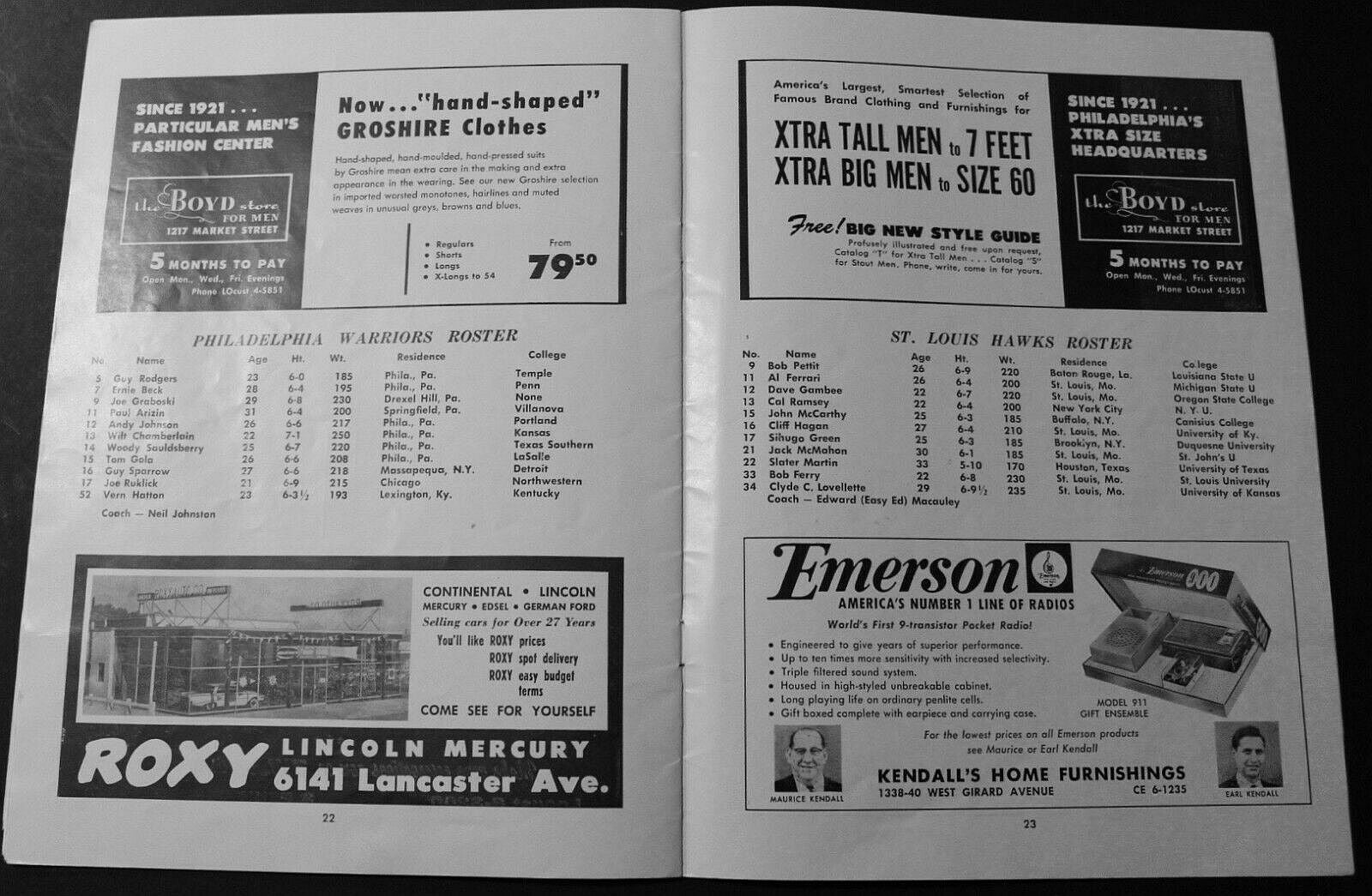 11-20-1959 Wilt Chamberlain's 11th NBA Game Warriors vs St. Louis Hawks Basketball Program