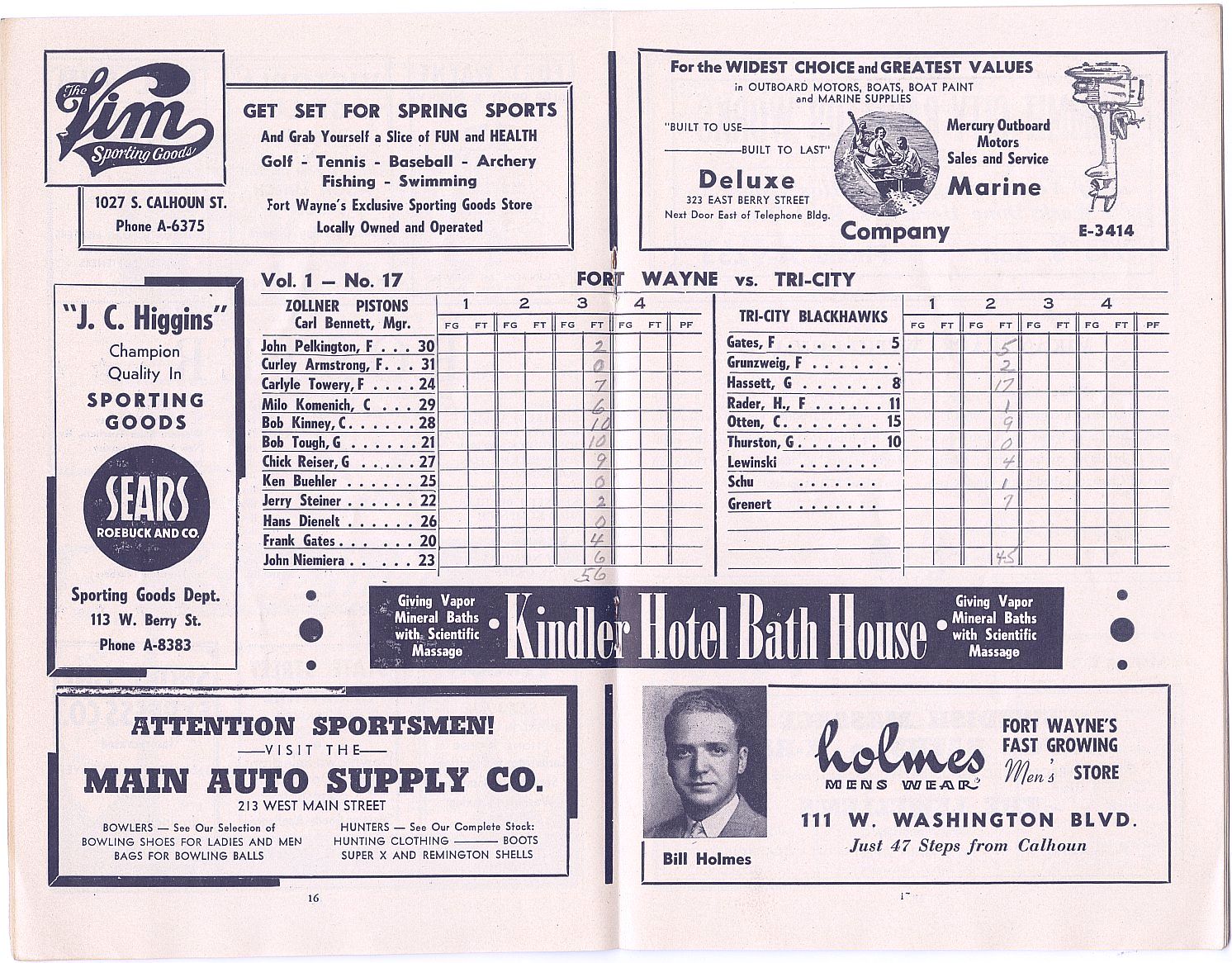 1946-47 Ft. Wayne Zollner Pistons vs. Tri-City Blackhawks FIRST YEAR NBA Program