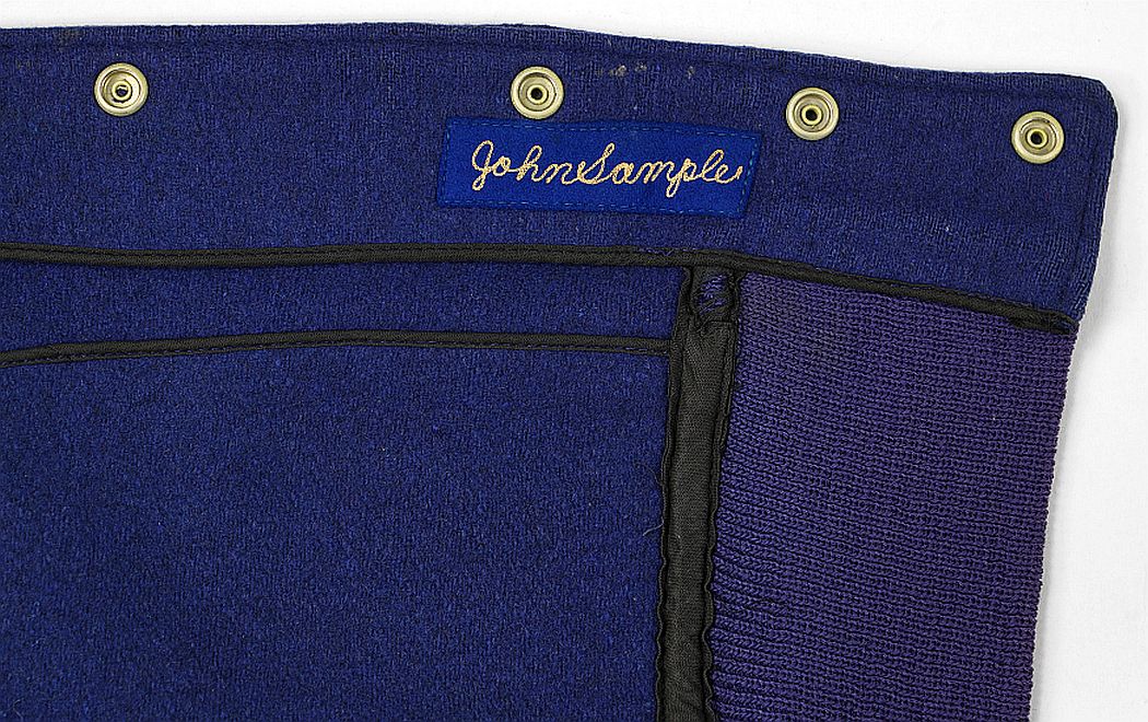 Imagine this: right place, right time. Johnny Sample, a guy who had that golden touch, was no stranger to luck. A seventh-round pick out of the University of Maryland-Eastern Shore, Johnny wasn't anyone's first choice-but he sure made history. Drafted by the Baltimore Colts in 1958, his career took him on a wild 11-year ride, closing out with the New York Jets in 1968. Along the way, Johnny stacked wins like few could ever dream of-back-to-back NFL Championships with the Colts in '58 and '59, and that legendary AFL Championship and Super Bowl III win with the '68 Jets. Yeah, he's the only player to ever win an NFL championship, AFL championship, and a Super Bowl. Talk about a hat trick.Now let's talk about this jacket. Not just any jacket-this is a 1958 Baltimore Colts World Champions jacket from "The Greatest Game Ever Played." Picture it: blue wool, varsity-style, with those cream-colored leather sleeves that scream "classic." On the left breast? A football-shaped twill patch proudly declaring "WORLD CHAMPIONS 1958," circling the iconic Colts logo-the horse, football, and helmet. Inside, there's even a label embroidered with "John Sample" in white cursive. And you can't miss the tags: "The Jacket for Champions Tailored by Butwin" and "Bacharach Rasin Co. Athletic Equipment, 14 N. Howard St. Baltimore." This thing's built like a winner-ribbed cotton rings the collar, waistband, and cuffs, with seven snap buttons ready to go.Johnny wore this beauty with pride, no doubt about it. And you can tell-this jacket's got character. There's a 2-inch hole on the collar, a moth hole near the right breast, some cracking on the leather, fading on the fabric, stains, and that kind of wear that tells you this jacket has seen some serious action. It's not just a piece of clothing; it's a relic from one of football's golden eras. A true collector's item, a symbol of a man who made his own luck-and never looked back.***NOT FOR SALE***