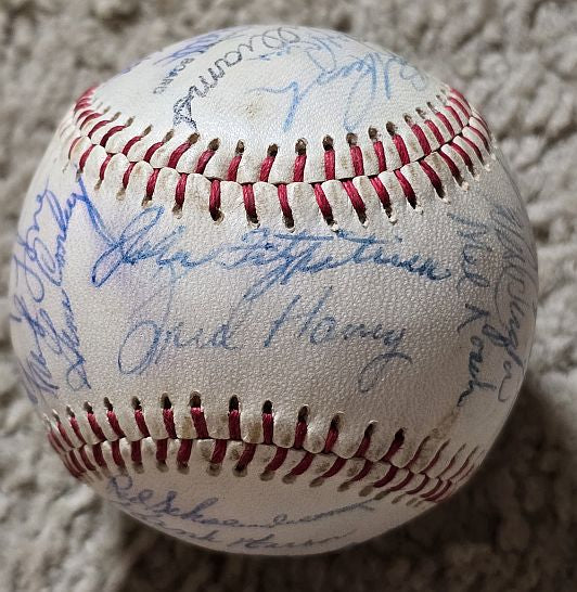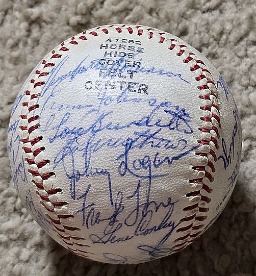 29 Signatures that we’d rate an average of 7 out of 10 on a Wilson Ted Williams “Speed Ball.” The ball itself looks almost brand new.