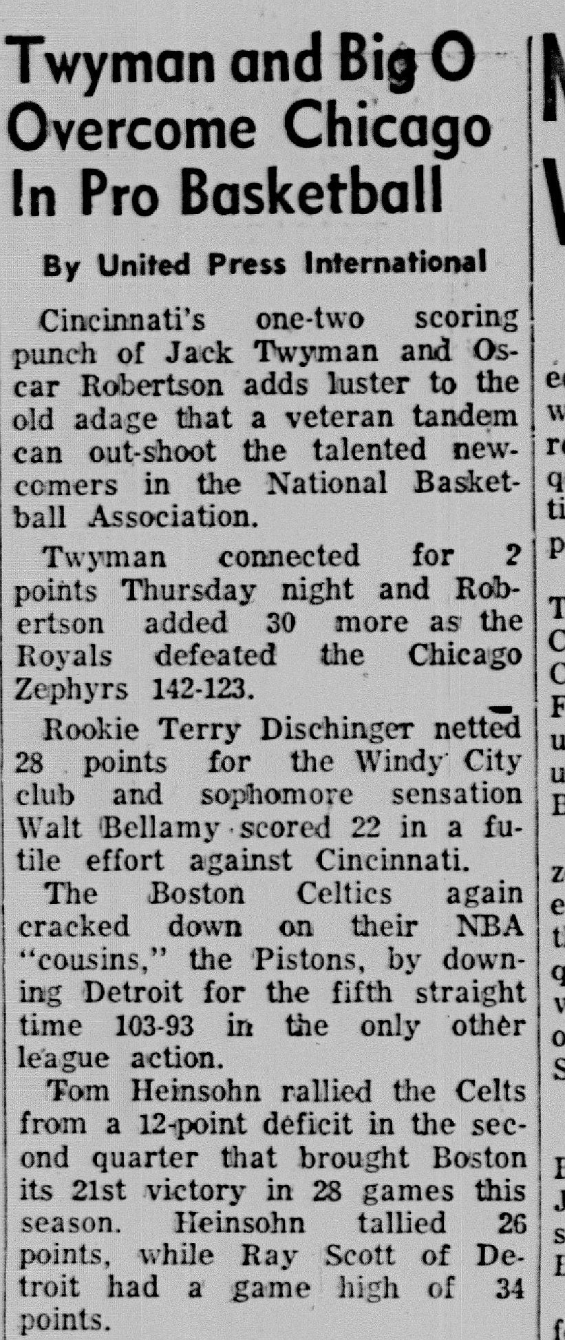 1962 Chicago Zephyrs vs. Cincinnati Royals 1962 Scorecard Program Oscar Robertson 30 PTS