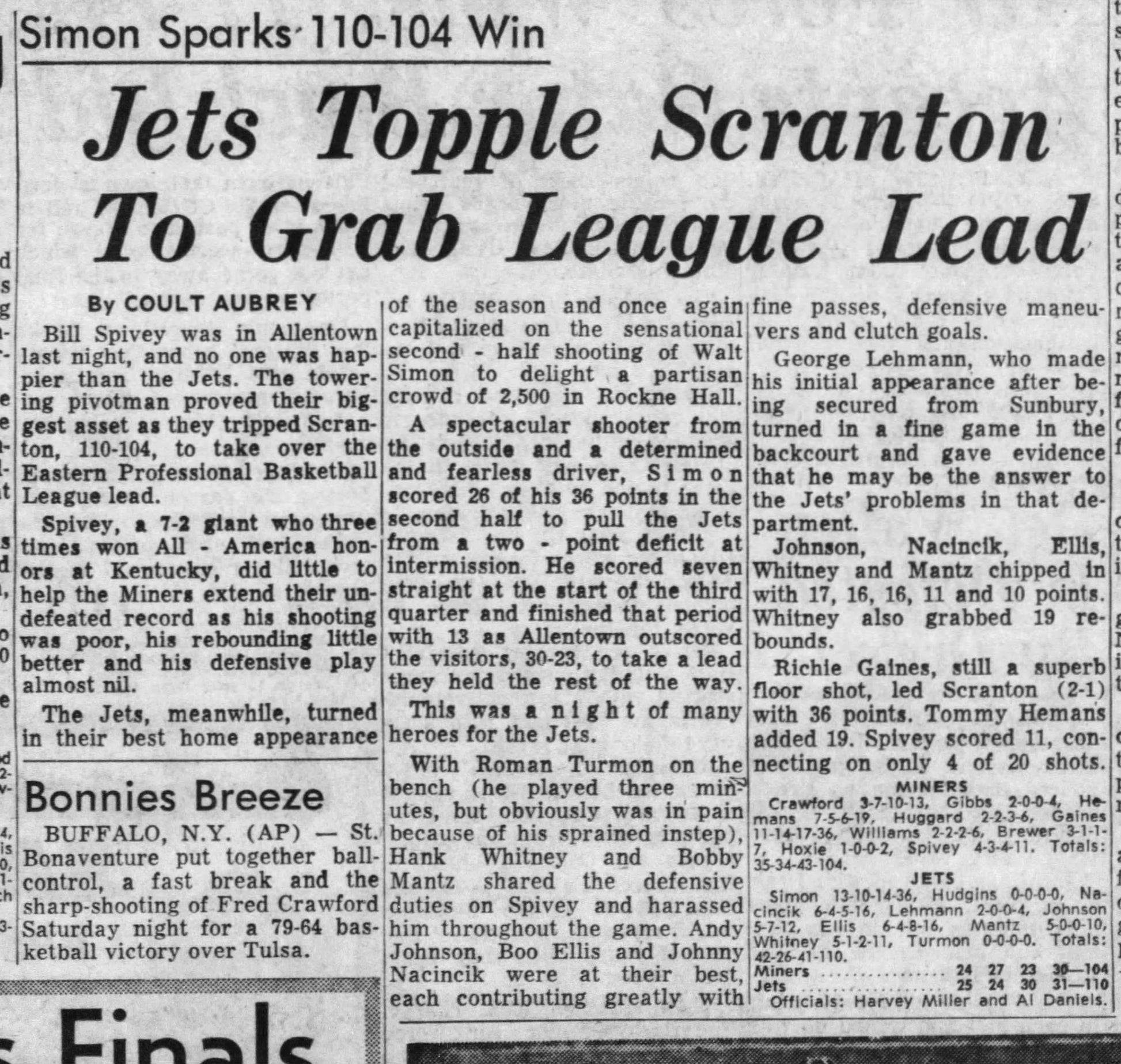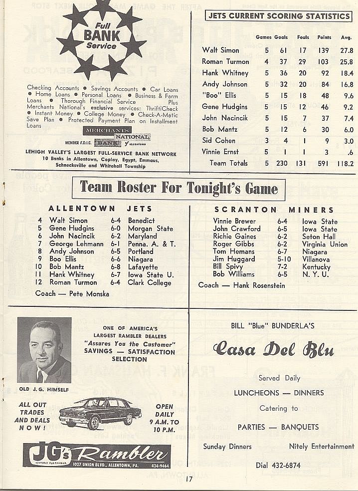 1963-64 Allentown Jets vs. Scranton Miners EPBL Eastern League Basketball Program