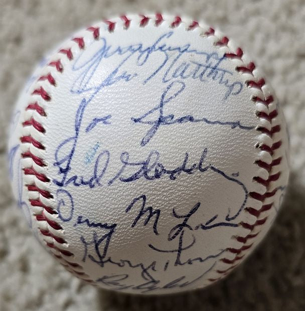 Offered is a gorgeous (like right out of the box) Official American League (Joe Cronin) baseball with 31 signatures that we’d rate a 9 out of 10. Doesn’t get any nicer than this one!