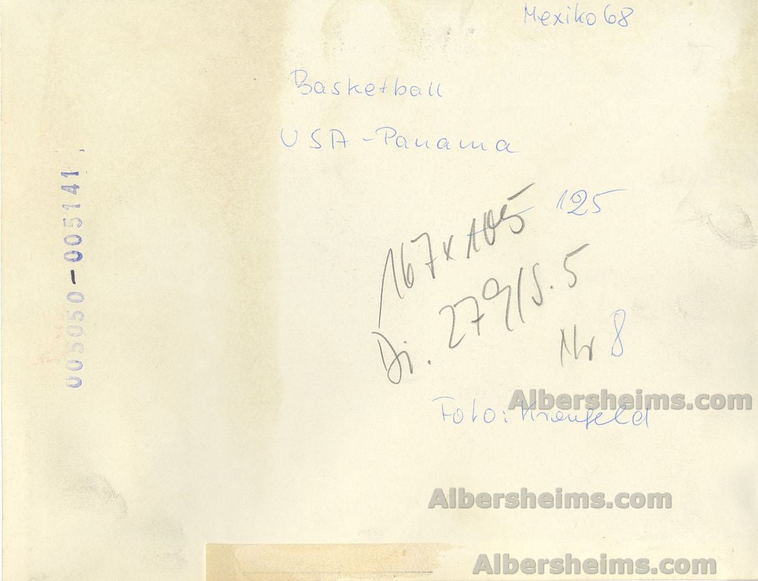 The 1968 United States men's Olympic basketball team represented the United States at the 1968 Summer Olympics in Mexico City, Mexico from October 13 to 25, 1968. Team USA won its seventh consecutive gold medal.The roster was led by future NBA All-Stars Haywood (19 years old) and White (21 years old), who led the team in scoring, with an average of 16.3 points and 11.7 points respectively. Haywood was the youngest player to make the USA basketball team at the time.This original TYPE I photo (measuring 9" x 7") in size features the USA team playing Panama (who they beat 95-60). Great shot of #8 Spencer Haywood going airborne over Panama. Also in the picture are #12 Mike Silliman, #6 JoJo White, Charlie Scott, and Calvin Fowler.Great action shot!!!