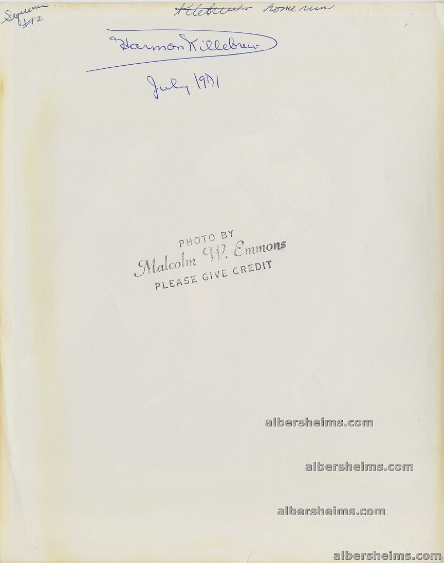 Harmon Killebrew (1936-2011) was a legendary power hitter who played 22 MLB seasons, primarily with the Minnesota Twins. The "Killer" belted 573 home runs, leading the American League six times. He won the 1969 AL MVP award and made 11 All-Star teams. Known for his mammoth home runs and gentlemanly demeanor, he was inducted into the Hall of Fame in 1984.In the 1971 Major League Baseball All-Star Game, Harmon Killebrew hit a two-run home run as part of a historic game with six home runs, all by future Hall of Famers. The game, played at Tiger Stadium, saw the American League defeat the National League 6-4. This was Killebrew's final All-Star Game appearance, and the only one in which he played first base.Offered is an original TYPE I photograph measuring 8" x 10" in size taken by one of the best photographers in the business, Malcolm Emmons (his period stamp on the back) showing Killebrew watching his round tripper heading for the stands as Johnny Bench stands behind him, watching helplessly.Awesome shot from a movie magic moment!