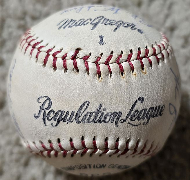 21 Ballpoint signatures (averaging 8/10 in strength) on this creamy off-white Regulation League baseball are highlighted by: