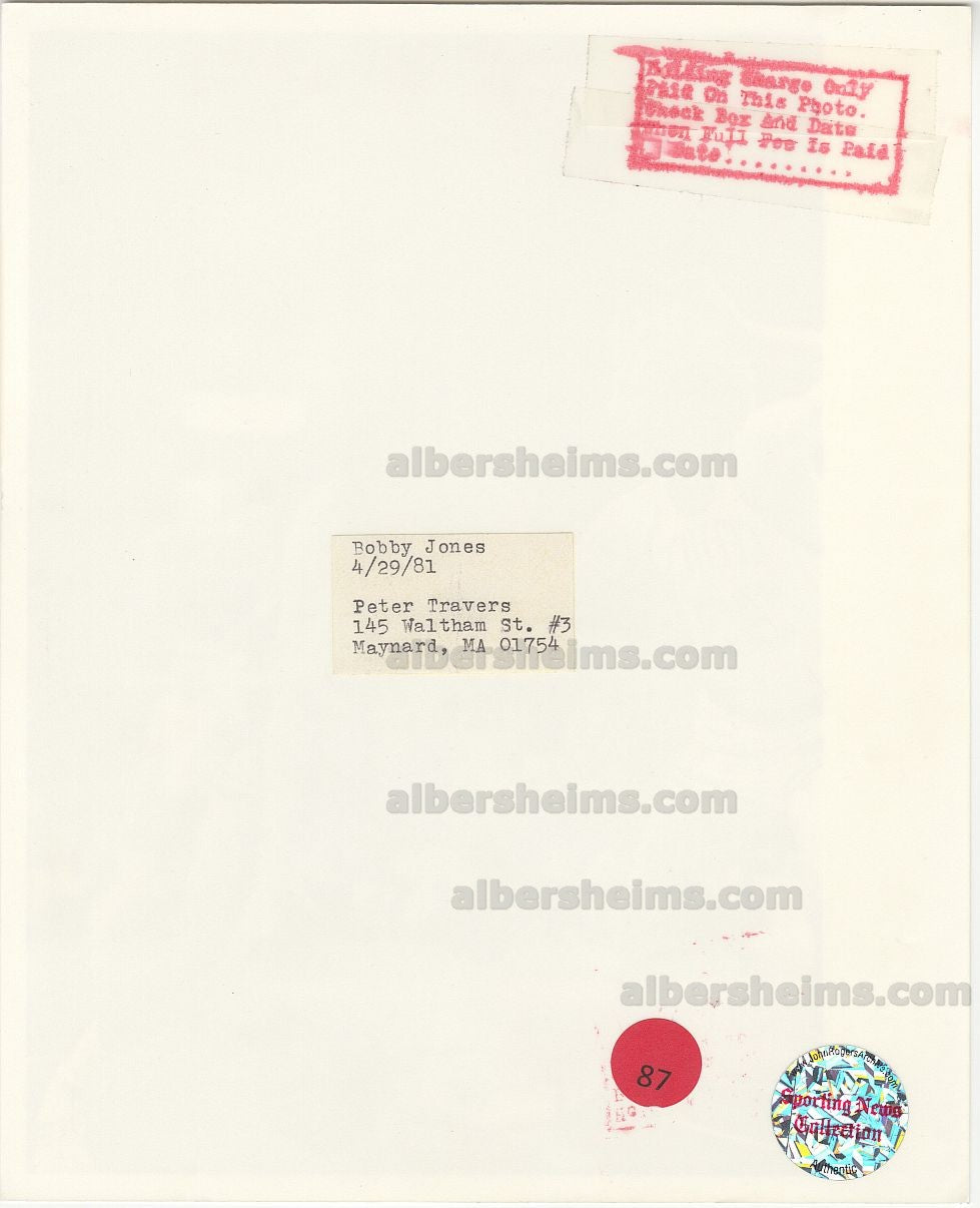 1980-81 Action photograph of young Larry Bird from the Boston Celtics as he played tight defense against Bobby Jones of the Sixers. Taken during Bird's second year in the NBA during Game 5 of the Eastern Conference Finals. Jones put up 17 points that night, while Bird had the game high of 32 pts with 11 Total Rebounds in the Celtics victory (111-109)This is an original TYPE 1 photo that measures 8x10 in size.Stamped on the back by photographer Peter Travers. From the Sporting News Archives.