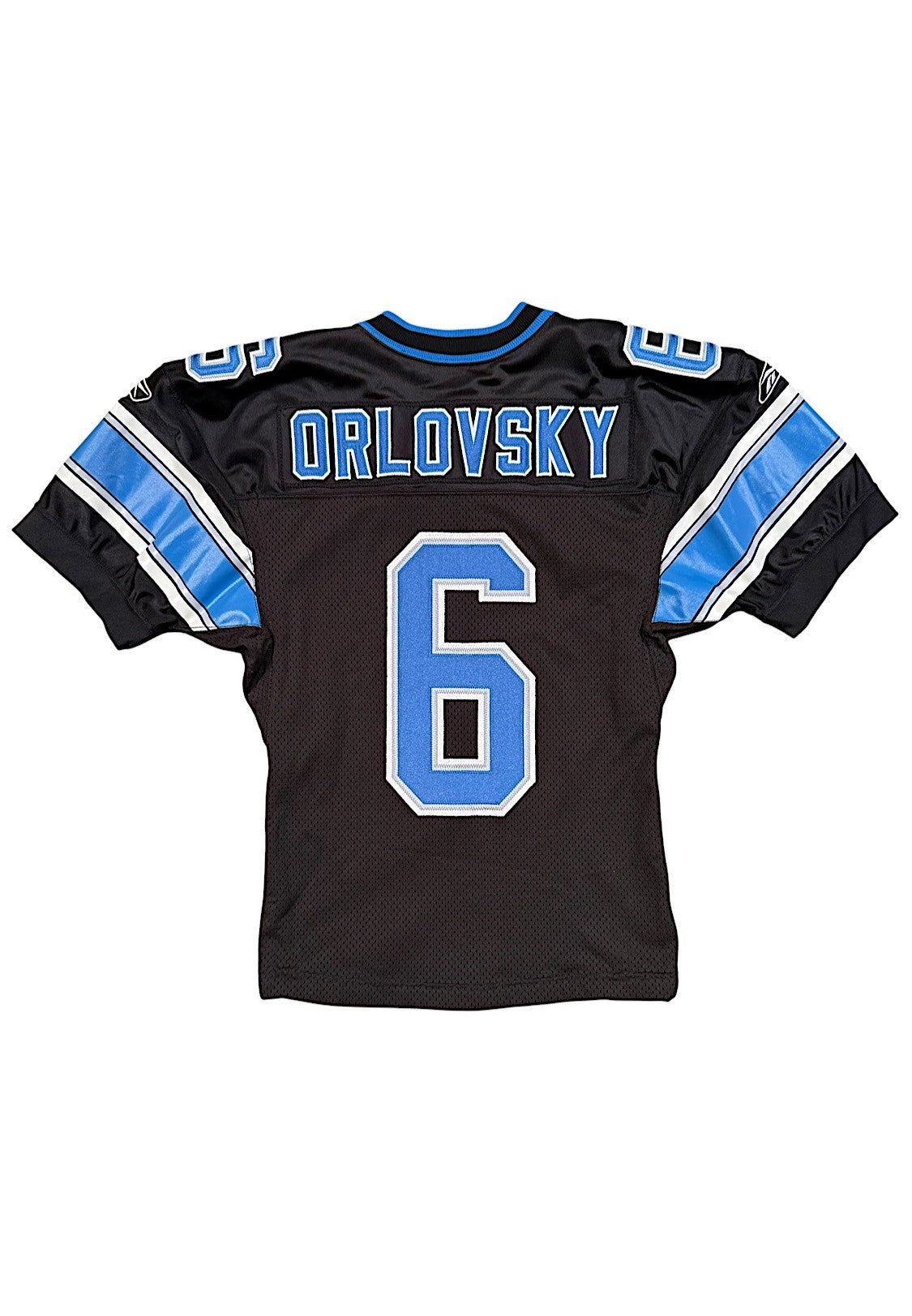 Dan Orlovsky is a former NFL quarterback turned prominent football analyst. During his 12-year NFL career (2005-2017), he played for seven teams including the Detroit Lions, Houston Texans, Indianapolis Colts, and Detroit Lions again. While primarily a backup quarterback, Orlovsky started 17 games and threw for over 3,000 yards with 15 touchdowns. He's perhaps most remembered for a 2008 safety where he ran out of the back of his own end zone while playing for the winless Lions.Since retiring, Orlovsky has become one of ESPN's most recognizable NFL analysts. He appears regularly on shows like "Get Up!" and "NFL Live," providing quarterback-focused analysis and breakdowns. His passionate, animated style and deep technical knowledge have made him a fan favorite. Orlovsky is known for his detailed film study and ability to explain complex quarterback concepts to viewers. He's also active on social media, sharing football insights and engaging with fans about the game.Offered is a slightly worn 2006 professional game model Detroit Lions jersey (slight wear).Inside the neck of this black mesh jersey, is a white strip tag with: 05-46 S. NFL shield on the front collar. Player number (6) on the font/back and shoulders, done in blue on grey on white tackle twill. Player name (ORLOVSKY) on a black nameplate across the back, in blue on white tackle twill. Reebok logos on the sleeves. The sides have been taken in as per player specs. This jersey is properly tagged, presented to us as game-used, and in our opinion shows appropriate wear.Comes with a Grey Flannel Auctions LOA
