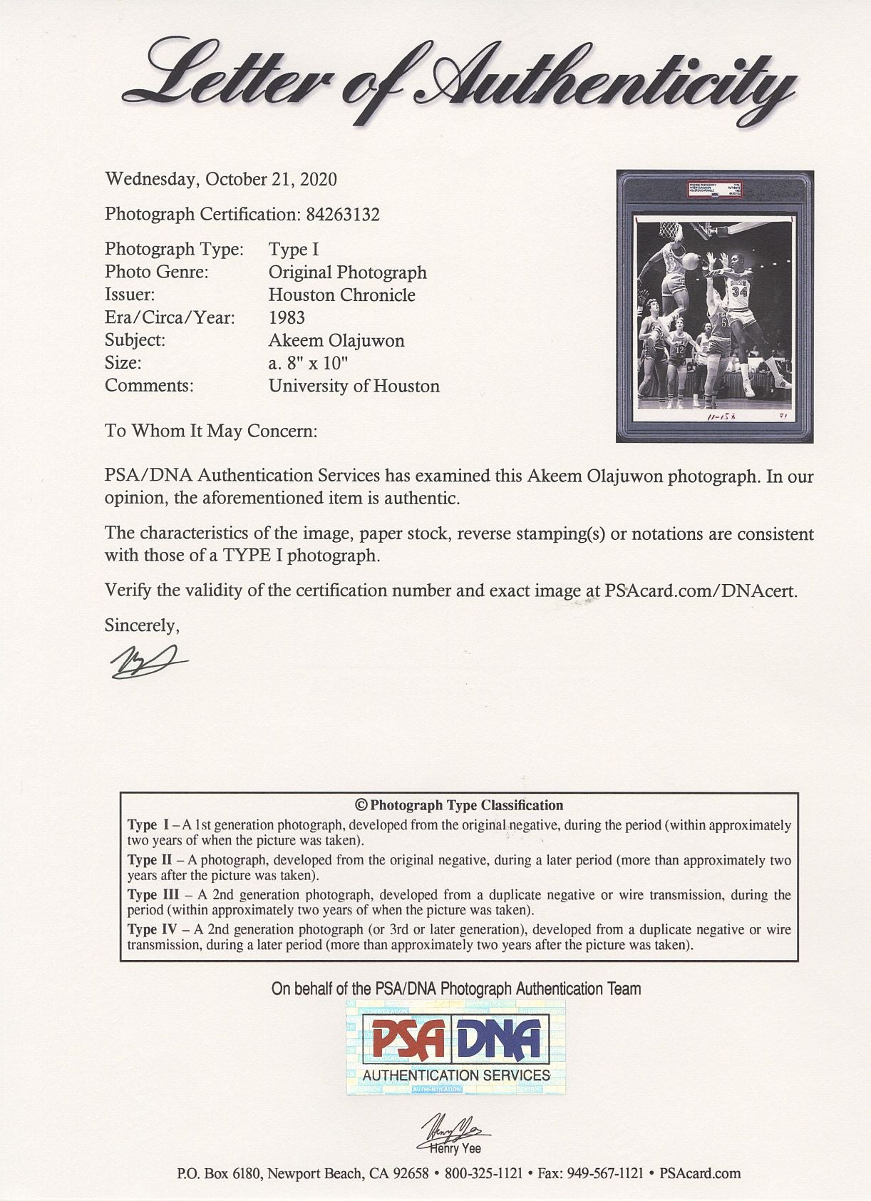 Akeem Olajuwon Takes U of Houston to Their 12th Straight SW Conference win TYPE 1 Original Photo PSA/DNA