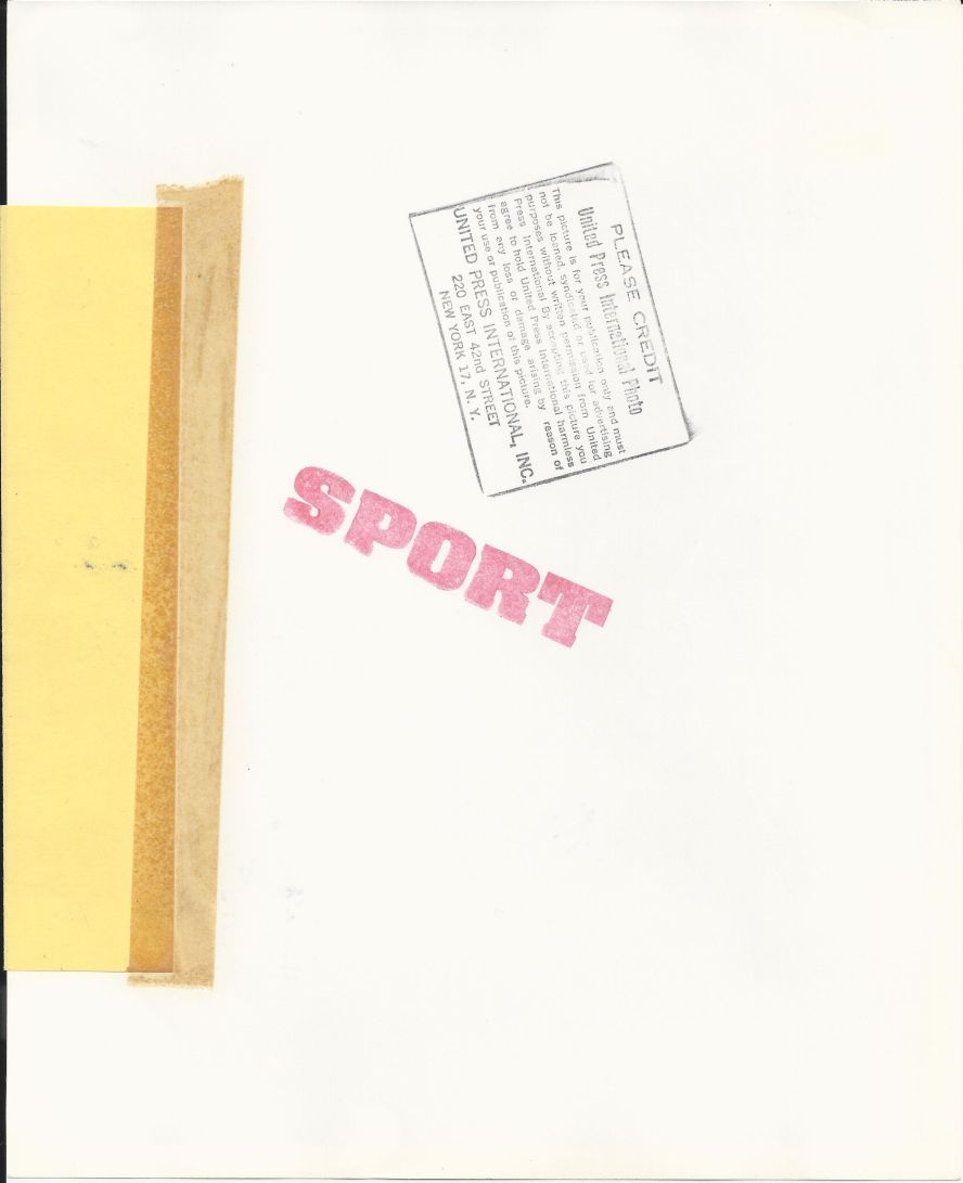Angelo Bertelli was such a legend at Notre Dame that he would win the Heisman Trophy in 1943 after only playing in 6 games. We offer an original 10x8 wire photo with the original Sport and UPI stamp on the back. Also original paper caption is attached from 11/16/41 (ACME photo credit) of Betelli getting off a quick kick against Northwestern. Notre Dame won 7-6 in this very close game. Fantastic detail of Notre Dame and Northwestern players.