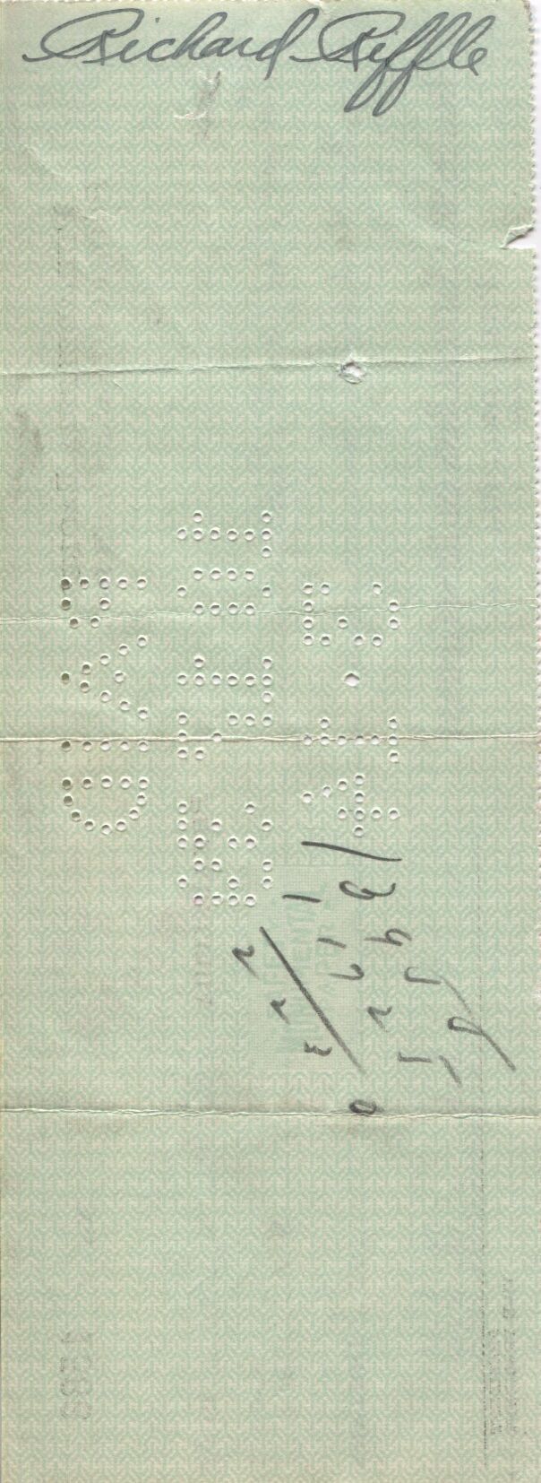 Dick Riffle (D. 1981) was a professional American football player who played running back for five seasons for the Philadelphia Eagles and the Pittsburgh Steelers.We offer an endorsed Eagles payroll check signed by Riffle and by HOFer Bert Bell (D. 1959) on the front.