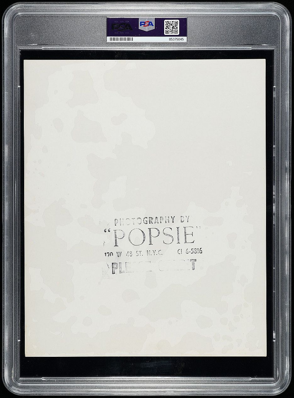 Charlie Parker, known as "Bird," was a revolutionary jazz saxophonist and composer whose contributions helped shape modern music. Born on August 29, 1920, in Kansas City, Kansas, and raised in Kansas City, Missouri, Parker developed an early love for music. By his teenage years, he was playing alto saxophone and learning the ropes in Kansas City's vibrant jazz scene. Parker's unique sound-a mix of intricate melodies, rapid tempos, and groundbreaking improvisation-became the foundation of bebop, a style that transformed jazz from dance music to an art form demanding virtuosity and deep understanding.Parker's genius came with personal struggles. His life was marred by addiction, beginning with a morphine dependency after a car accident in his youth, which later shifted to heroin. Despite these challenges, Parker's creativity flourished. Collaborations with legends like Dizzy Gillespie, Max Roach, and Thelonious Monk led to seminal recordings such asKo-Ko,Ornithology, andParker's Mood. He also broke racial barriers by performing in integrated venues and influencing a diverse array of musicians, cementing his legacy as a cultural icon.Tragically, Parker's life was cut short when he died on March 12, 1955, at just 34 years old, a victim of his addictions and relentless lifestyle. Yet, his influence endures. Parker's innovative approach to harmony, rhythm, and improvisation reshaped jazz and inspired countless musicians across genres. Today, "Bird" is celebrated not only as a pioneer of bebop but as one of the greatest artists in American music history.Offered is an original 8" x 10" Silver Gelatin photograph of Charlie "Bird" Parker with Tommy Porterbest known as the bassist in Charlie Parker's classic quintet (Miles Davis was a part of this group as well) to his far right taken by William "Popsie" Randolph with his stamp on the back.They were playing at infamous NYC jazz club, 32sEncapsulated as a TYPE I original photograph by PSA/DNAThis original print derived from Popsie's personal archive and stamped on back with his iconic stamp that he used in the 1940s/50s. ORIGINAL photos of Jazz musicians are rarely seen, as opposed to promotional photos put out by the record companies.About photographer, William "Popsie" Randolph -William "Popsie" Randolph was a legendary photographer who captured the heart of mid-20th-century jazz and entertainment. Born in New York City in 1920, Randolph started in the Benny Goodman Orchestra before finding his calling behind the camera. From the 1940s to the 1980s, his lens documented the icons of jazz, Broadway, and pop, including Louis Armstrong, Duke Ellington, Billie Holiday, Frank Sinatra, and Elvis Presley.Randolph's work stands out for its intimacy, capturing both the glamour and raw, unguarded moments of his subjects. Sought after by artists and labels like Columbia Records and RCA, his images graced album covers, newspapers, and magazines, making him a hidden yet influential force in music photography. Though he passed away in 1978, Randolph's photos remain a vital record of American music culture, inspiring generations of musicians and photographers.