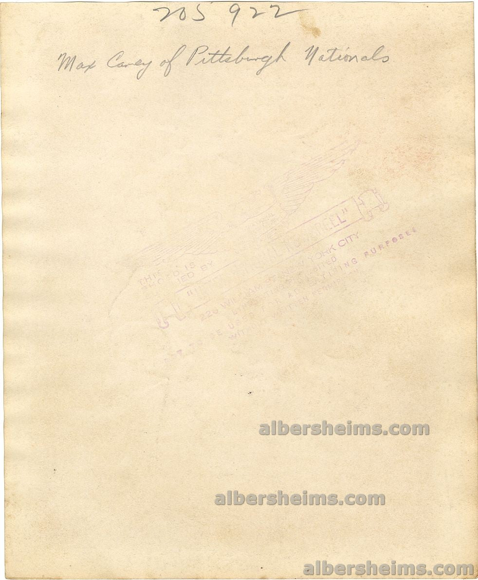 Circa 1925 Max Carey Pittsburgh Pirates Baseball HOF 10 X Stolen Base Leader Original TYPE I Photo