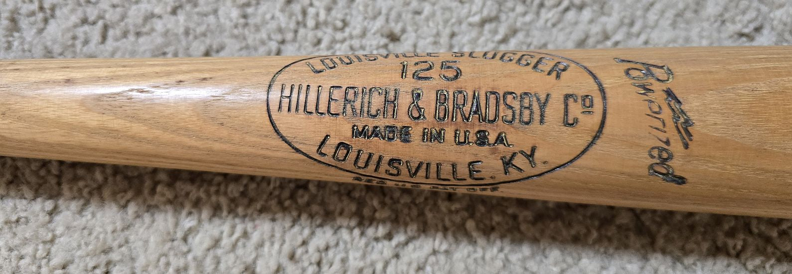 This Louisville Slugger shows light usage and based on the markings on the knob (the number 4 is embossed in a dot matrix into the knob of thisW166 model. Presumably used by California Angels players during BP and possibly even in a game. Measures 33.5" and weighs 32.56 ounces