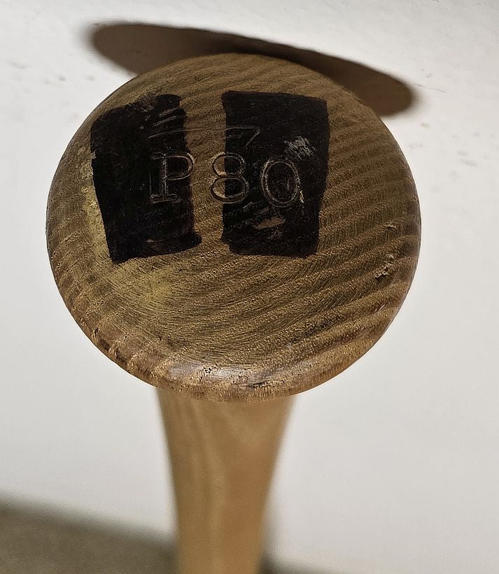 Offered is a game used P80 Louisville Slugger that dates from either 1969 with the Seattle Pilots (one year) team or with the Milwaukee Braves (first year team). Measures 34.5” and weighs 33.83 ounces. His #12 is written on the top of the barrel (he wore #12 in Seattle and Milwaukee) in black marker. Some nice moderate usage.