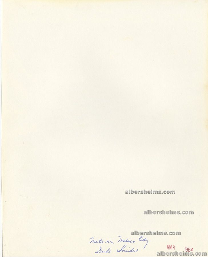 In March of 1964, the New York Mets (their first year in Shea Stadium) played a 3-game exhibition series (during spring training) against the Mexico City Tigres and the Mexico City Red Devils.The Dodgers would head south later in the month to tune up for their 1964 season.After spending his entire career with the Brooklyn/L.A. Dodgers, future Hall of Famer, Duke Snider was sold to the New York Mets in 1963 and still put up decent numbers.He was selected to the 1963 NL All-Star team.However, the Mets were an abomination and Snider asked to be traded to a contending team.On opening day of 1964, Snider was sold to the San Francisco Giants and retired at the end of the season.Offered is a crystal clear 8" x 10" photograph of Snider in March of 1964, less than a month before his move to the San Francisco Giants in Mexico City for the exhibition series. Gorgeous photo of the Duke of Flatbush signing autographs for several school children.