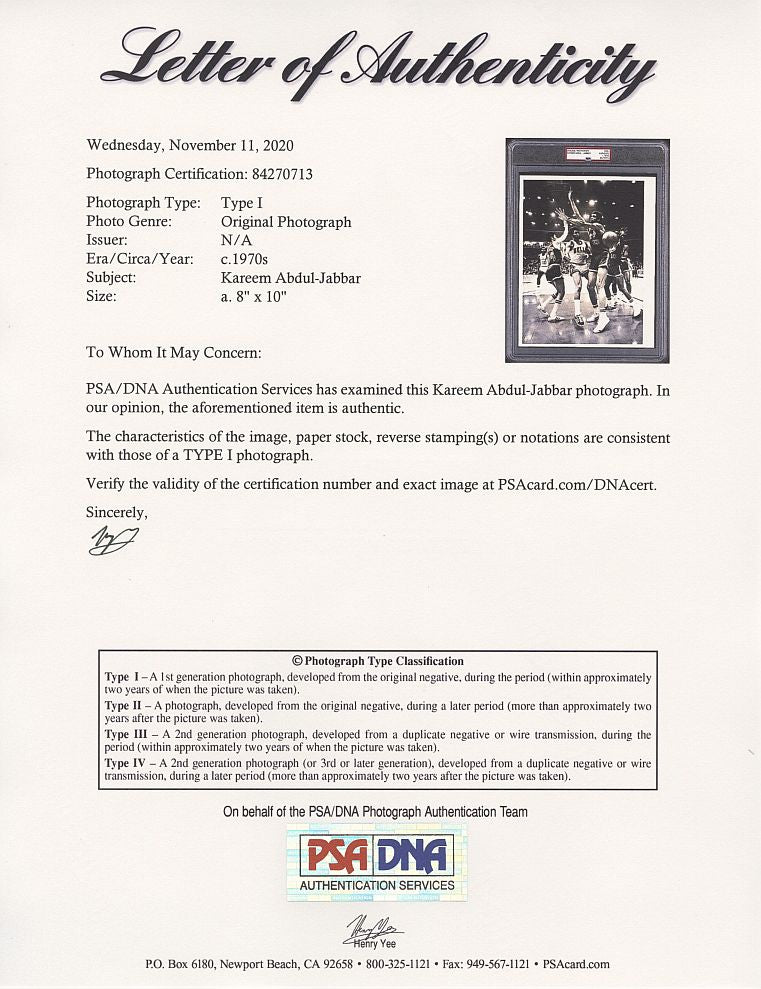 Early 70's Kareem Abdul Jabbar Shows Off His Defensive Prowess vs. Chicago Bulls TYPE 1 Photo PSA/DNA
