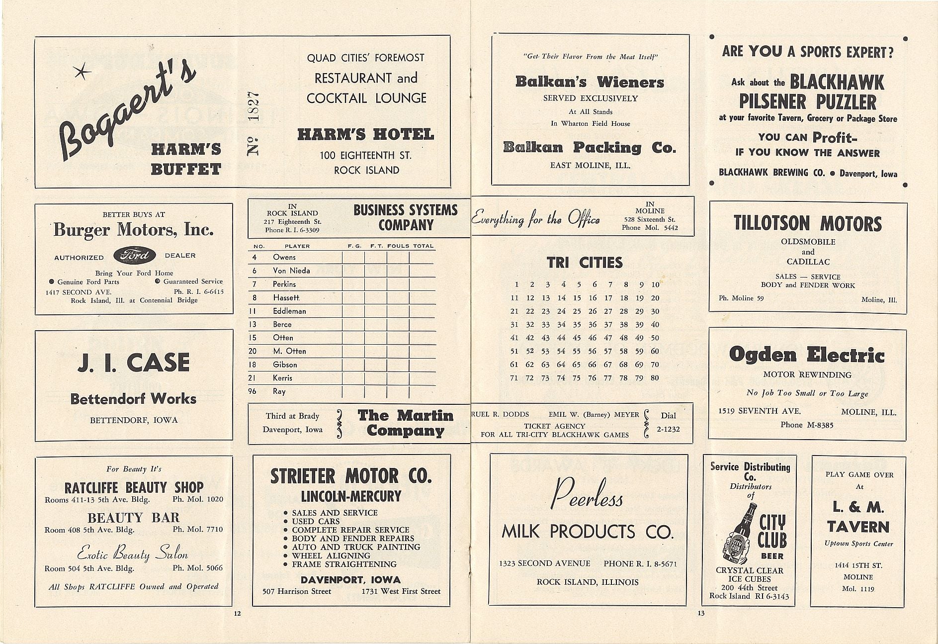 Harry Gallatin Signed AUTO November 5, 1949 - Tri-Cities Blackhawks Home opener vs. NY Knicks Basketball Program