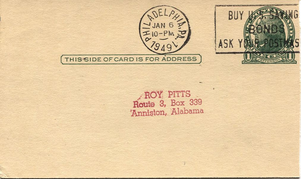 Howie Dallmar played collegiately at Stanford University. He led Stanford to the 1942 NCAA Championship, earning Tournament Most Outstanding Player honors. After transferring to Penn, he was an All-American selection in 1945. From 1946 to 1949, he played professionally for the Philadelphia Warriors of the Basketball Association of America (a forerunner to the NBA). Dallmar was the third leading scorer (behind Joe Fulks and Angelo Musi) on the team which won the 1947 BAA Championship. He was All-BAA first team in 1948. Dallmar coached the University of Pennsylvania basketball team from 1948 to 1954, before returning to Stanford as head basketball coach in 1954. He remained at Stanford for 21 seasons, compiling a 256-264 record. He died of congestive heart failure in 1991.Offered is a signed gpc postmarked from January 6, 1949 in Philadelphia.From the infamous, Roy Pitts collection.Interestingly enough on January 6, 1949, the Warriors played the Baltimore Bullets in Baltimore and lost 93-88.Dallmar scored 6 points. We presume this went out in the mail that morning or someone in the Warriors front office mailed this for him.