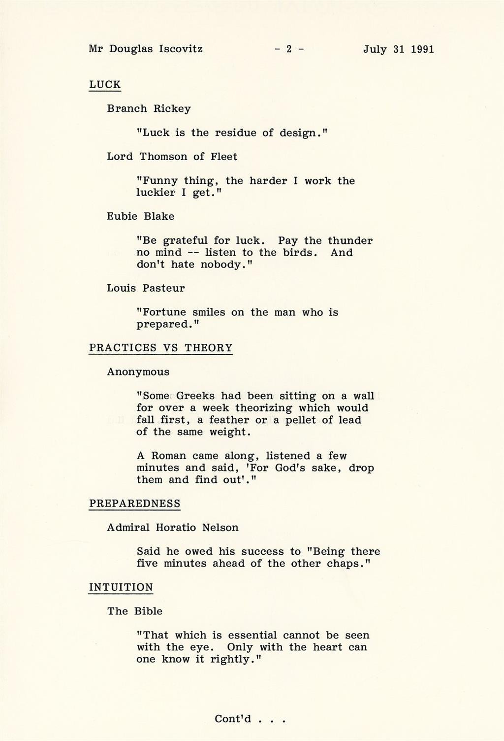 Cooke (D. 1997) was a Canadian entrepreneur and former owner of the Washington Redskins (NFL), the Los Angeles Lakers (NBA), and the Los Angeles Kings (NHL). He built The Forum in Inglewood, California and FedEx Field near Landover, Maryland. Cooke was recognized for having a keen eye for spotting leadership and the ability to teach as he hired Joe Gibbs and Sparky Anderson to their first head coach and managerial positions. Both men would go on to become Hall of Famers with each winning three championships in their respective sports.He is a pretty tough autograph to come by and is considered a possible candidate for the Pro Football HOF.Offered is an incredible 4-page typed letter signed on Washington Redskins letterhead, dated July 31, 1991, regarding his philosophy for success in life. He basically gives his "success secrets" away and lists quotes/thoughts that he often would think about and try to live by.Signed at the conclusion by Jack Kent Cooke in black ink.INCREDIBLE CONTENT!!