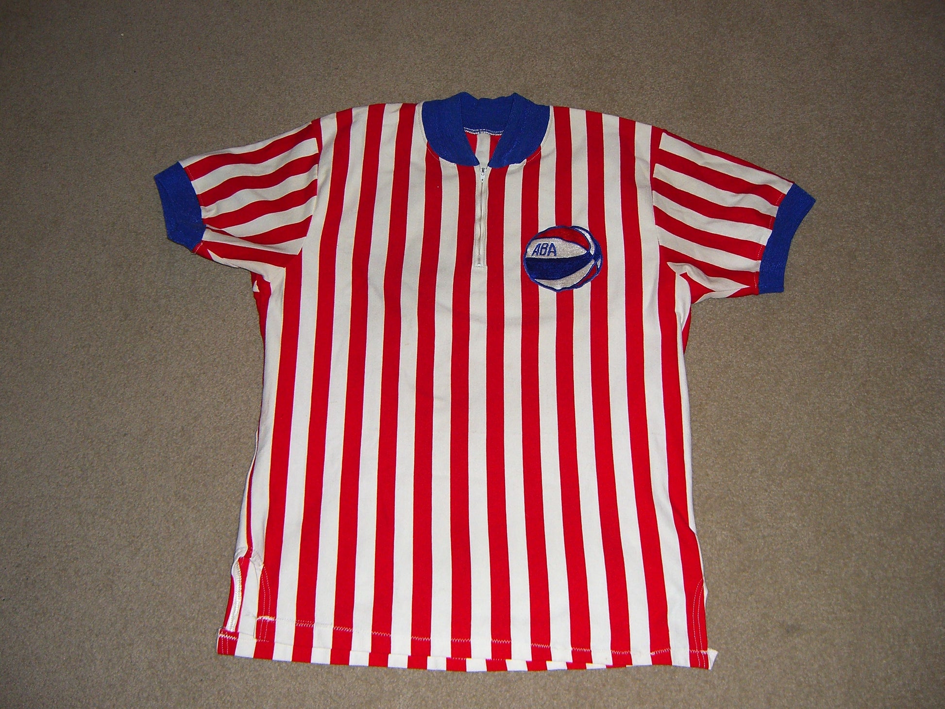 Vanak was a ref in both the NBA and ABA. In 1969, when the upstart American Basketball Association was raiding the NBA for talent, Vanak, along with three other top NBA "lead" referees - Joe Gushue, Earl Strom and Norm Drucker - jumped to the ABA with multi-year contracts paying much higher salaries than NBA officials received. As a result, professional officiating salaries dramatically increased. Vanak officiated in the 1966 NBA All-Star Game, 1970 ABA All-Star Game, 1972 ABA All-Star Game, 1974 ABA All-Star Game, 1977 NBA Finals, 1979 NBA All-Star Game, 1980 NBA Finals, 1981 NBA Finals, 1983 NBA Finals, 1984 NBA All-Star Game and 1985 NBA Finals The red-and-white striped ABA shirt has a Rawlings tag on the back inside tail, working white zipper on the blue front collar and ABA patch on the league's famous red-white-and-blue ball. The number "12" stands out on the back in white on a blue patch. I believe it was worn by John Vanak during the final season of the circuit in 1975-76, the only year this style of uniform included numbers. - NOT FOR SALE