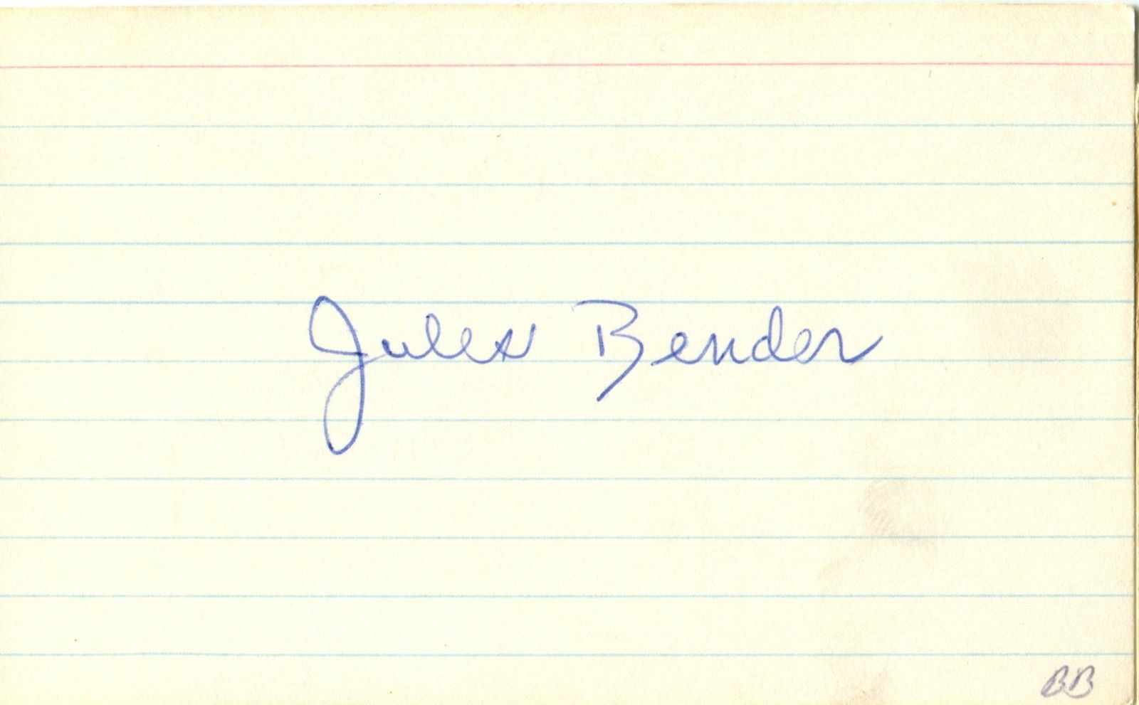 Jules Bender Signed 3x5 Card Early Basketball Player