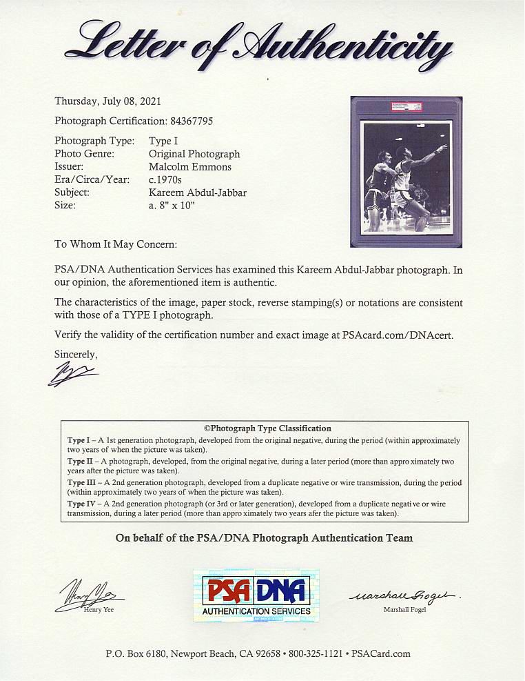 Kareem Abdul Jabbar Early 70's vs Celtics - Hank Finkel - Malcolm Emmons TYPE 1 Original Photo PSA/DNA