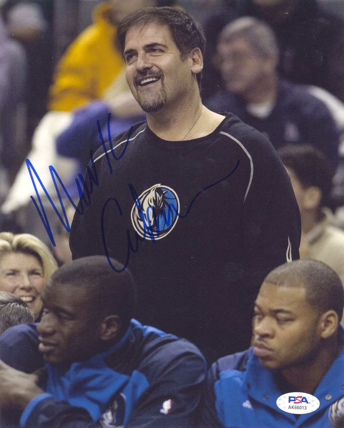 Mark Cuban is an American billionaire entrepreneur, television personality, and media proprietor whose net worth is an estimated $4.3 billion, according to Forbes, and ranked No. 177 on the 2020 Forbes 400 list. He is the owner of the Dallas Mavericks professional basketball team of the National Basketball Association (NBA) and the co-owner of 2929 Entertainment. He is also one of the main "shark" investors on the ABC reality television series Shark Tank.Offered is an 8x10 color photo of a younger Cuban circa early to mid 2000's in blue sharpie ink.PSA/DNA COA card included