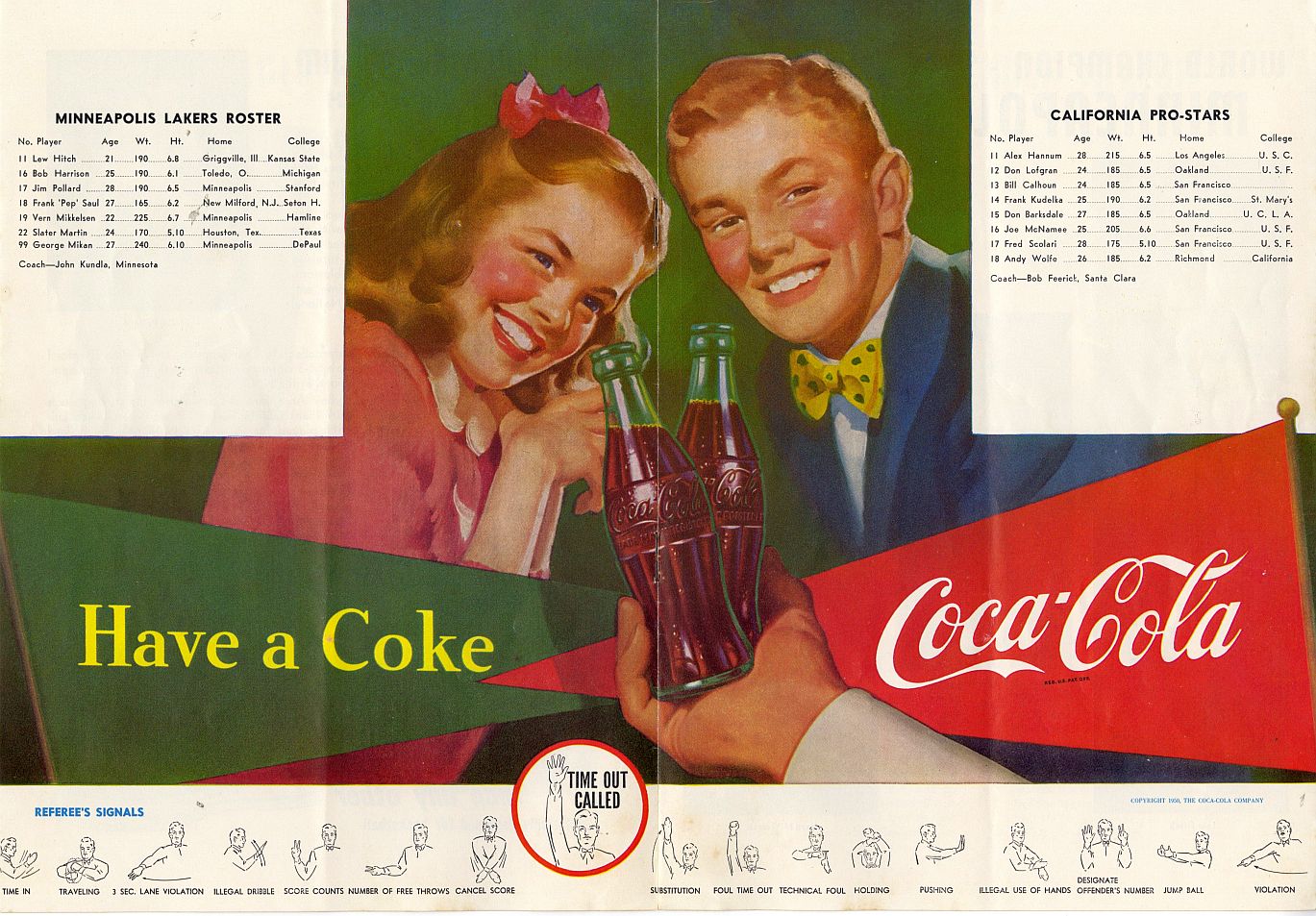 Minneapolis Lakers vs Cal Pro Stars Program - May 4, 1952 Featuring George Mikan & Don Barksdale