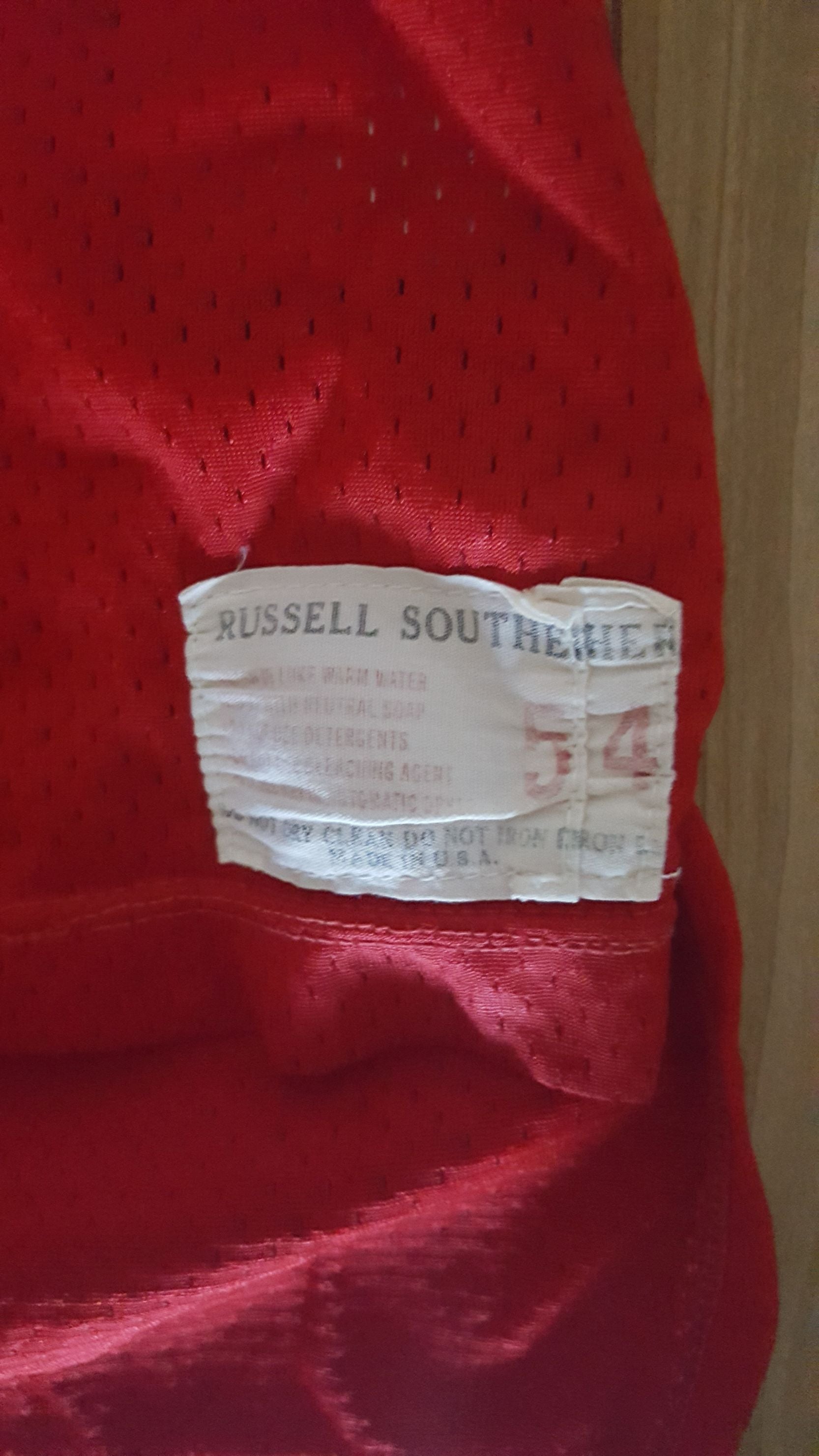 Tom Condon is considered one of the Top 5 Football agents in the NFL today.He represents or has represented, Drew Brees, Eli & Peyton Manning, J.J. Watt, Matt Ryan, Alex Smith,Sam Bradford,&Matthew Stafford; just to name a few.Before that, he was an NFL lineman out of Boston College who played from 1974-85 for the Kansas City Chiefs and New England Patriots.Offered is Tom Condon's game worn 1970's Kansas City Chiefs jersey.On the front left tail of the jersey is the "RUSSELL" manufacturer's tag with size "54" and wash instructions. Across the front, on back and on each sleeve is the player number "65" screen printed in red and gold. Across the back is the player name "CONDON" in white on gold tackle twill on a red mesh nameplate. Numerous repairs can be seen throughout the jersey.Awesomegame worn 1970's KC Chiefs jersey worn by one of the most powerful men in Football.NOT FOR SALE