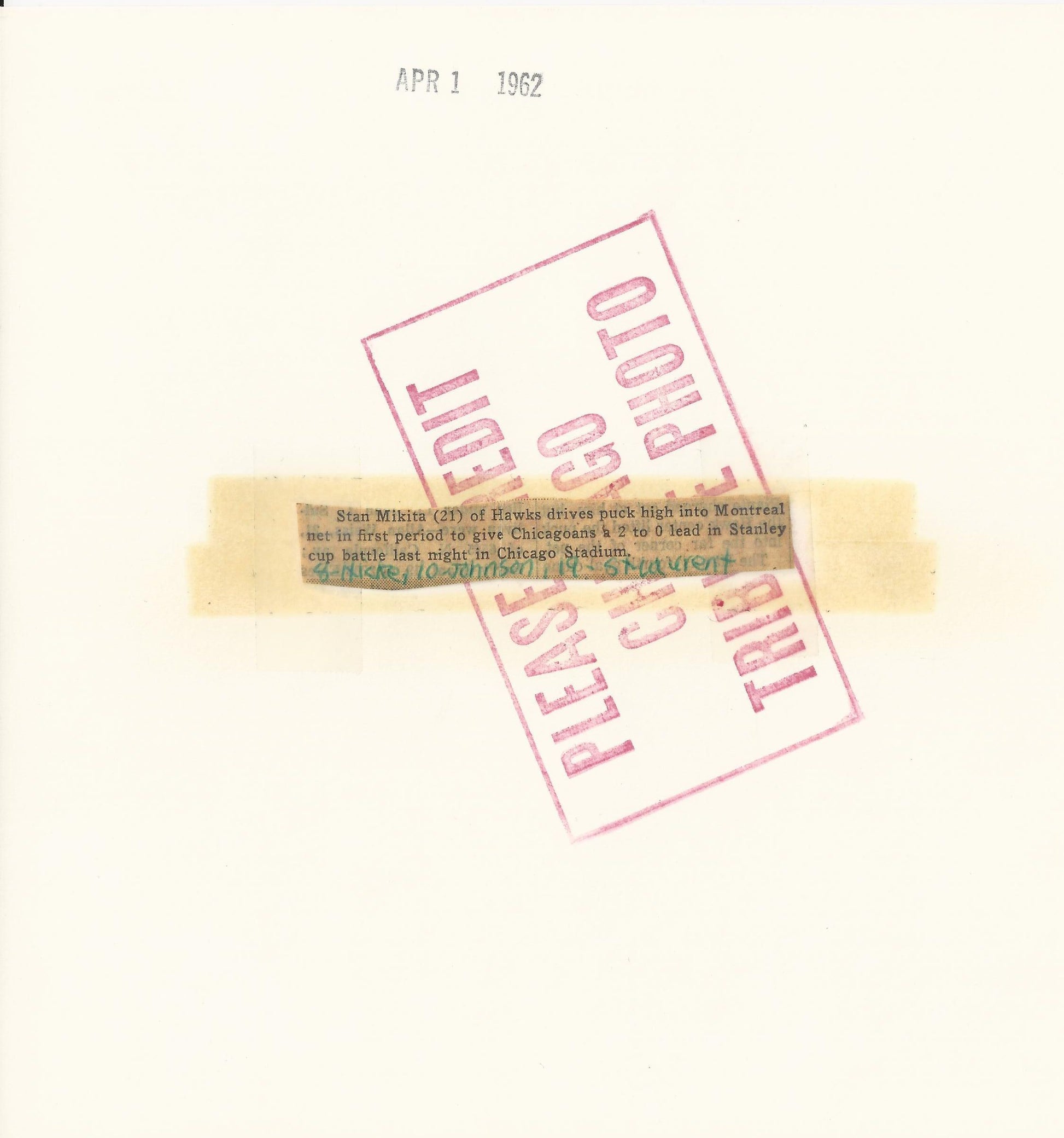 Original 8x8 Chicago Tribune (stamped on back) photo with original newspaper caption. Dated April 1, 1962