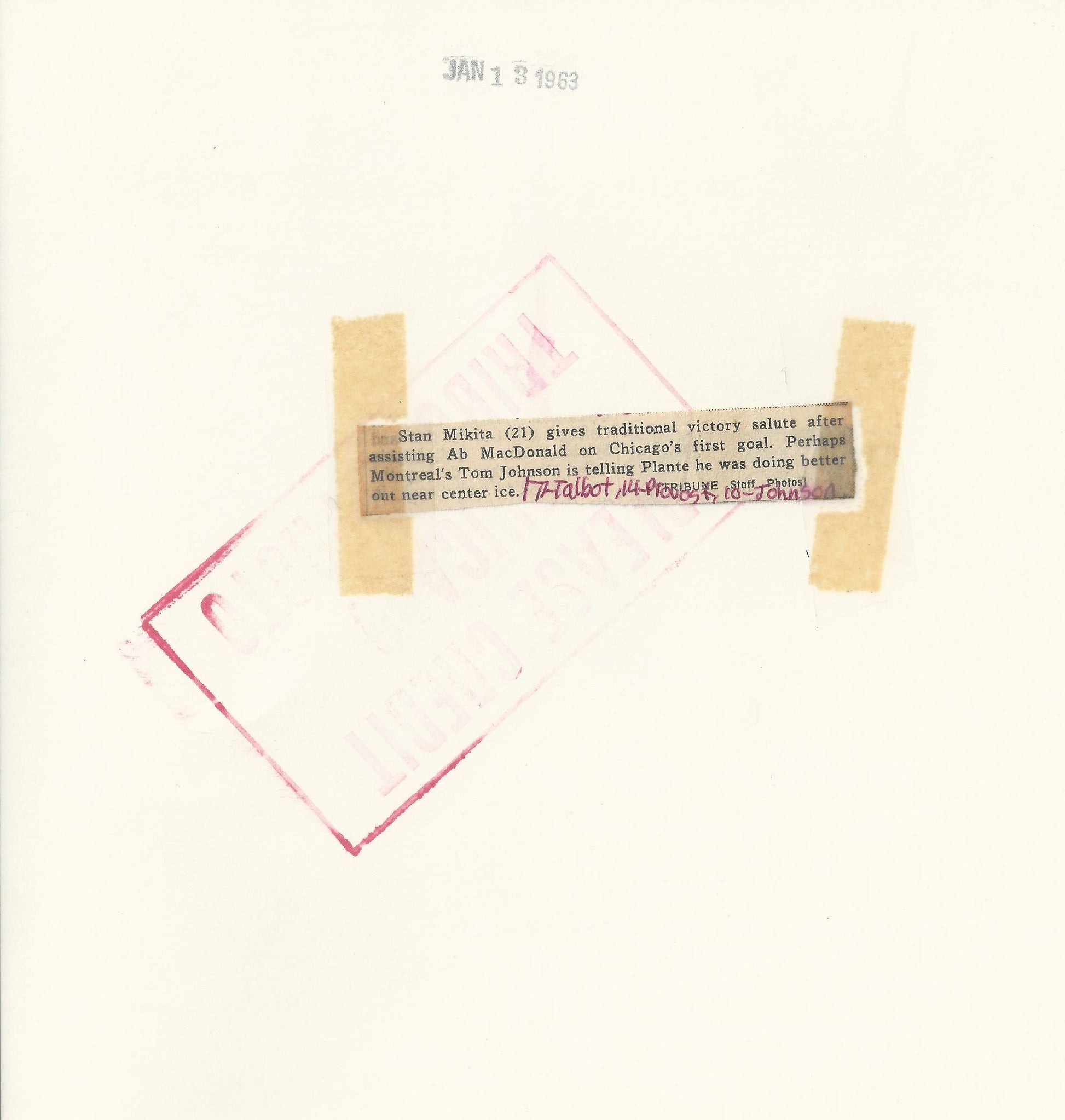 Original 8x8 Chicago Tribune (stamped on back) photo with original newspaper caption. Dated January 13, 1963. Great shot!