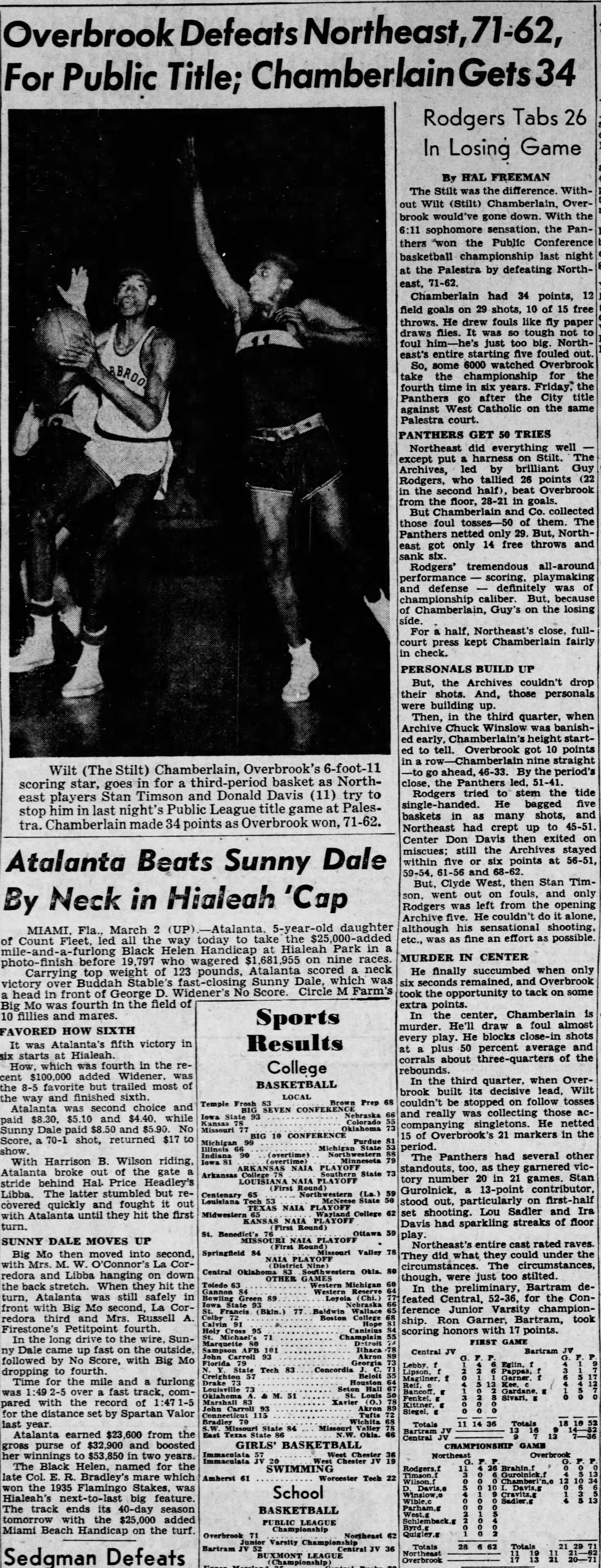 In Wilt Chamberlain's three years on the basketball team at Overbrook High School in West Philadelphia (same school that Will Smith and Seth Green would later attend); he took them to 3 City Championships.In his first year on the Varsity basketball squad in 1953 at the age of 16; they would go all the way to the City Championship (see our other ticket).This ticket dated March 2, 1953 is the earliest known ticket from the G.O.A.T.'s basketball career.Programs have popped up over the years, but never a full ticket or ticket stub. Graded AUTHENTIC BY PSAOn March 2, 1953; Overbrook High School would play Northeast for the City Public High School Championship; played at the Palaestra (University of Pennsylvania's arena).It was a close game in which Overbrook would prevail, 71-62 on the back of Wilt's 34 pints, 1 field goals on 29 shots, 10 of 15 free throws.He drew fouls like fly paper draws flies.This was a seriously close game as future Naismith Basketball Hall of Famer, and future Warriors teammate; Guy Rodgers put up 26 points for the Northeast squad.SUPER DUPER RARE!!!Side note - 9 Years to the day on March 2, 1962, Wilt would become the first and only player in NBA history to score 100 points in a game while playing for the Philadelphia Warriors vs the NY Knicks at Hershey Park, PA.*NOT FOR SALE*